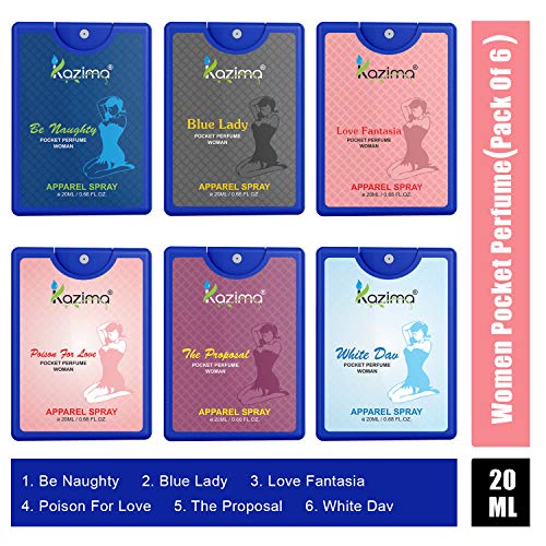KAZIMA Pocket Perfume For Women, 20ML Each (Be Naughty, Blue Lady, Love Fantasia, Poison for love, The Proposal, White Dav) (Pack of 6)