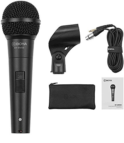 (Renewed) Boya BY-BM58 Professional Cardioid dynamic microphone with 5 metre XLR cable, female to 6.35mm male, Microphone mount & Carrying bag. For Vocal Speaker or Singing Recording Live Audio Recording