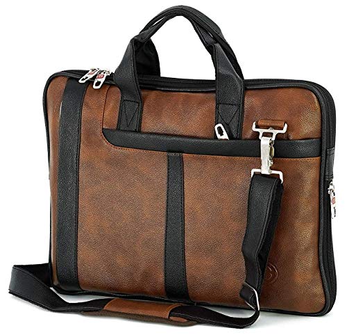 Storite PU Leather 15.6 Inch Laptop Shoulder Sling Office Travel Organizer Bag for Men & Women (39cm x 30cm x 6cm, Black/Brown)